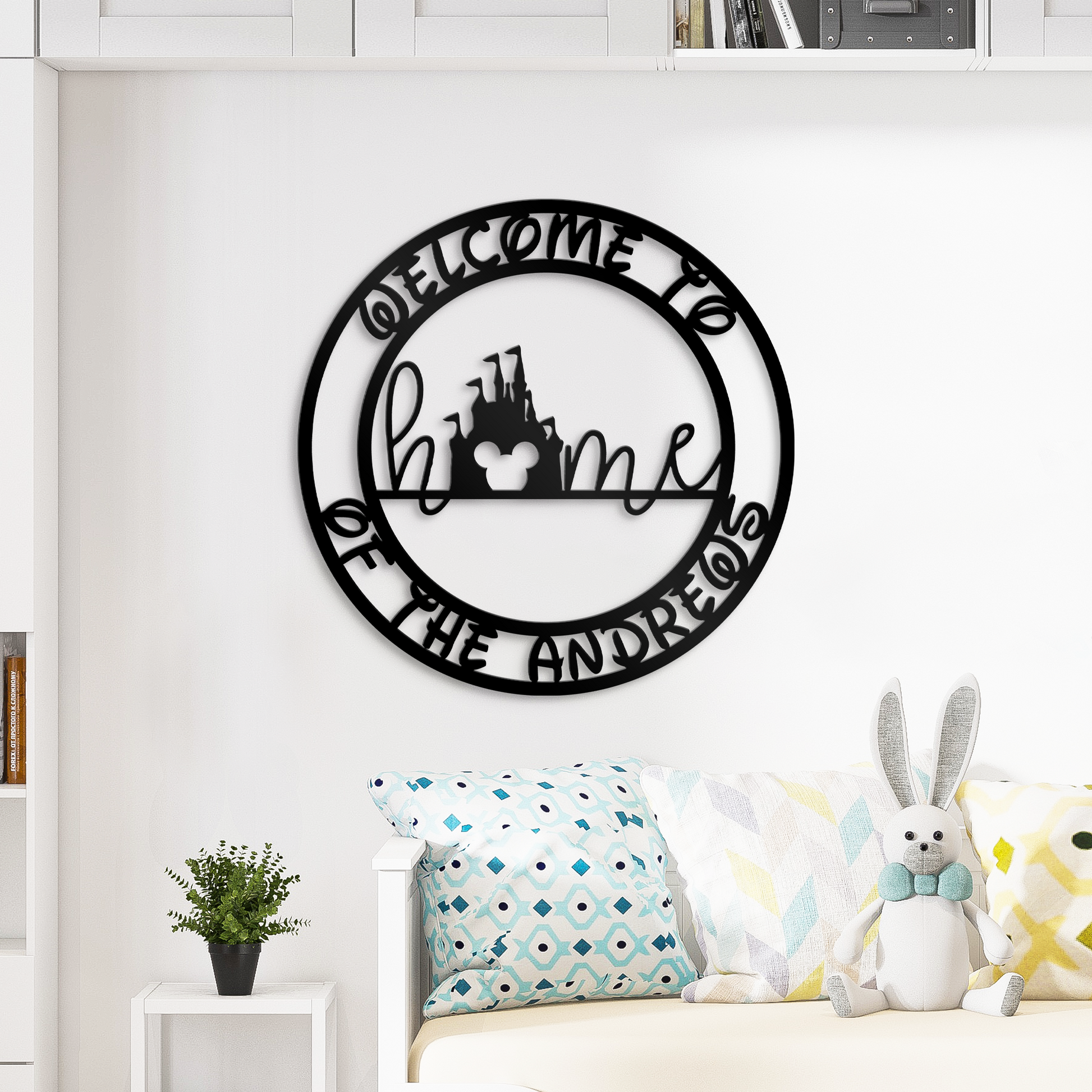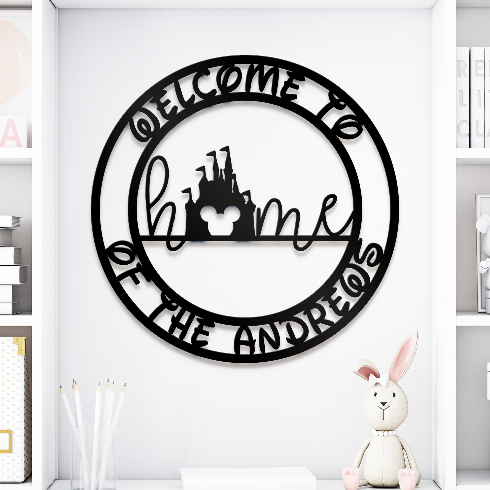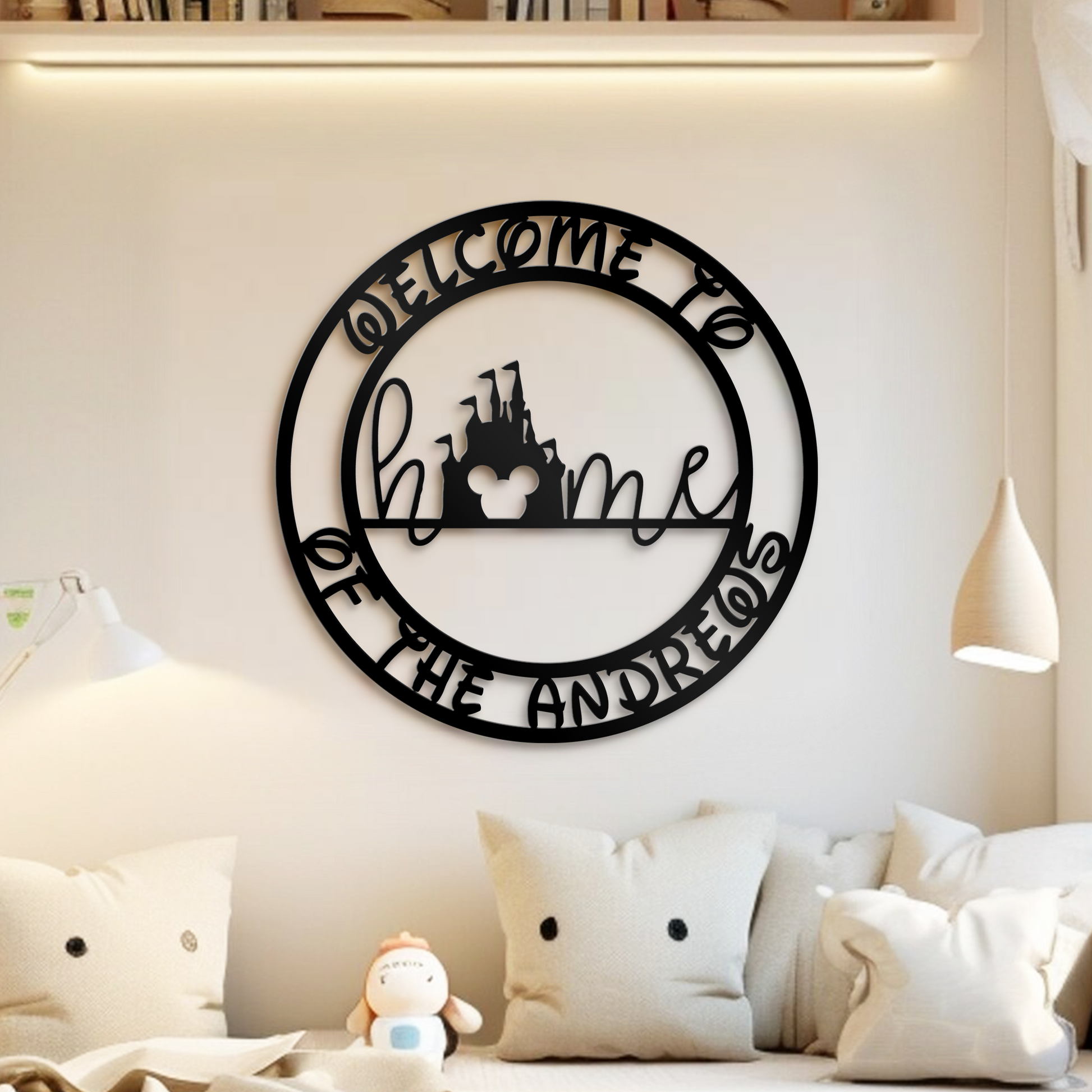 Customized Mickey Home Castle Family Name Metal Sign, Disney Theme Wall Decor